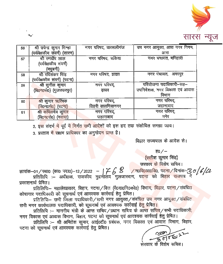 Post Views: 424 शशि कोशी रोक्का/सारस न्यूज़, पटना। बिहार में इन दिनों तबादला का दौरा चल रहा है। राज्य के…
