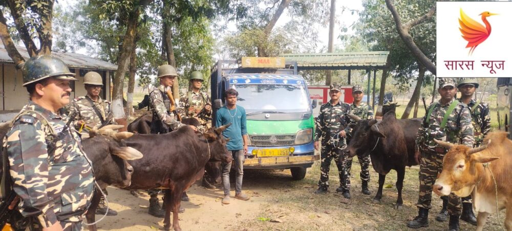 एसएसबी ने छः मवेशियों के साथ एक आरोपी तस्कर को इंडो नेपाल सीमा से किया गिरफ्तार।