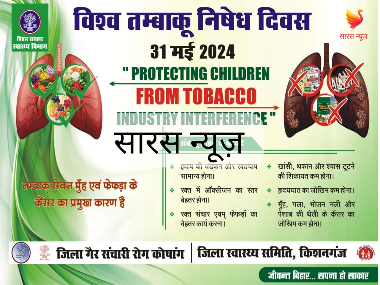 Post Views: 279 राहुल कुमार, सारस न्यूज़, किशनगंज। बहुत से नुकसानदायक बीमारियों की शुरुआत के पीछे तम्बाकू का सेवन ही…