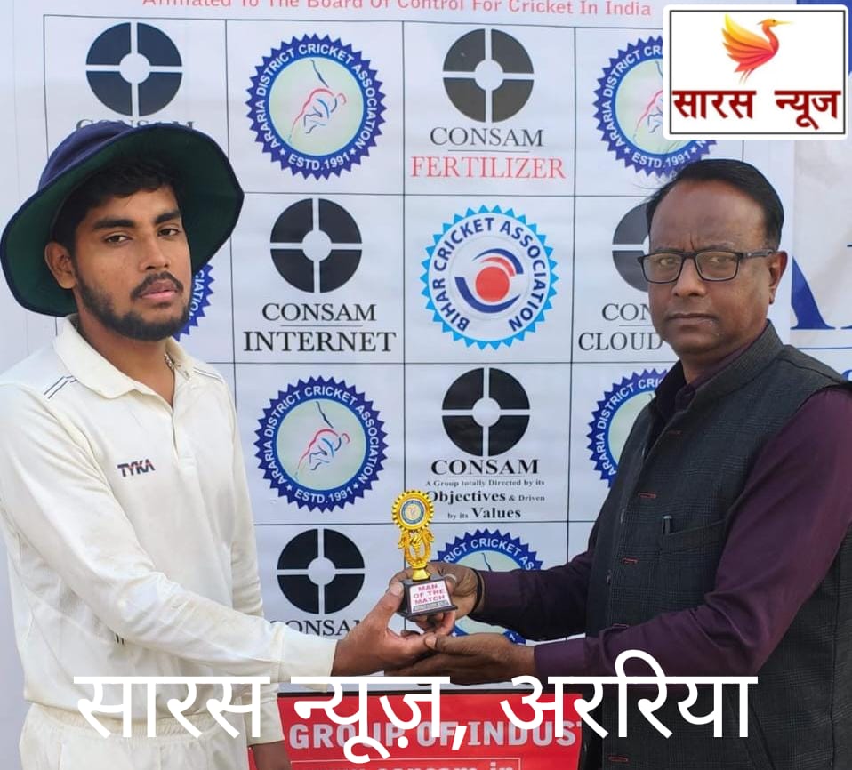 मैच के मैन ऑफ द मैच का पुरस्कार इंडस स्पॉटिंग क्लब ए के तन्मय को दिया गया। मैच में अंपायर की भूमिका में दिलीप झा और अशोक मिश्रा उपस्थित थे।