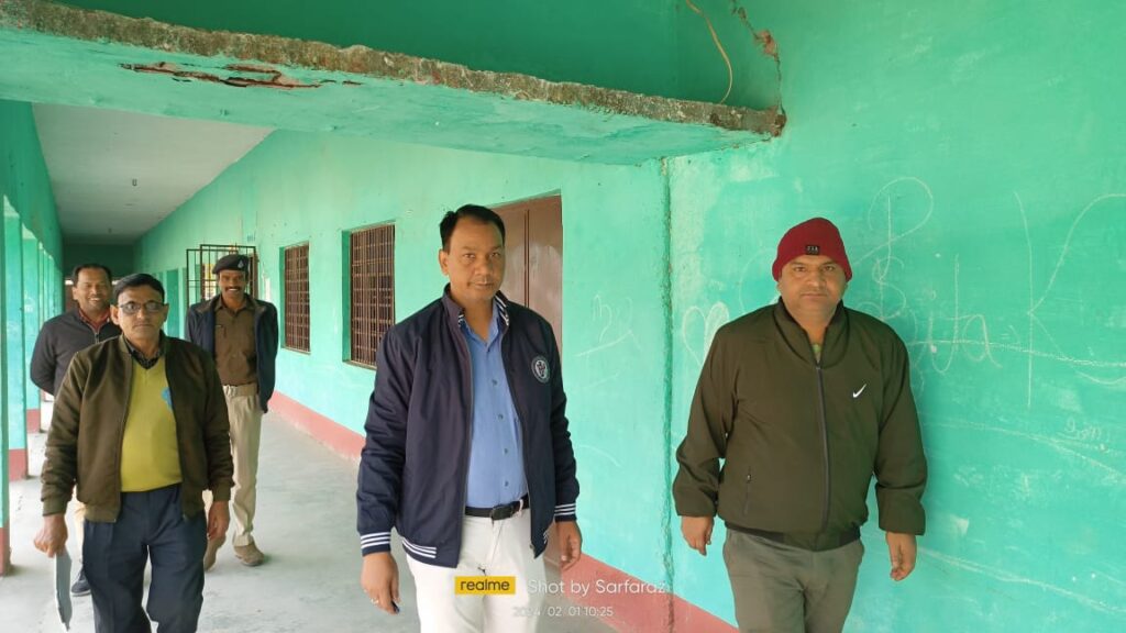 एसडीओ नवनील कुमार परीक्षा केंद्रों पर जांच करते हुए। गुरुवार 01 फरवरी को कड़ी सुरक्षा व्यवस्था के बीच इंटर की परीक्षा शुरू हुई. जिले के कुल 37 परीक्षा केंद्रों पर पहले दिन 06 हजार से ज्यादा परीक्षार्थियों ने परीक्षा दी. परीक्षा को लेकर प्रशासन ने सख्त इंतजाम किया था. वहीं सभी परीक्षा केंद्रों पर पर्याप्त संख्या में सुरक्षाबलों की तैनात की गई थी. परीक्षार्थी की पूरी तरह से जांच कर उन्हें परीक्षा केंद्र के अंदर जाने दिया गया. कदाचार रोकने के लिए केंद्र पर जहां मजिस्ट्रेट व पुलिस अधिकारी तैनात किए गए थे. वहीं जोनल व सब जोनल मजिस्ट्रेट भी कदाचार रोकने के लिए बहाल किए गए हैं. सदर एसडीओ नवनील कुमार ने भी जिला मुख्यालय के कई परीक्षा केंद्रों पर पहुंचकर स्वयं से जांच की है