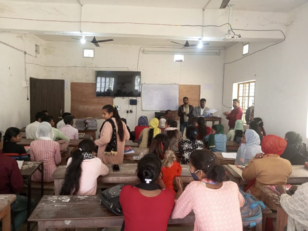 परीक्षा देते छात्राएं व कॉलेज के प्रधानाचार्य व अन्य मौजूद थे।