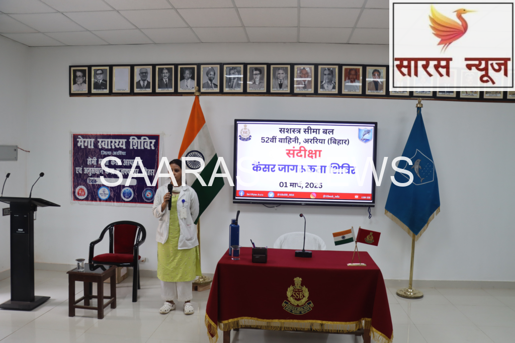 एसएसबी 52वीं वाहिनी के कमांडेंट महेंद्र प्रताप के निर्देशन में संदीक्षा सदस्यों के लिए सदर अस्पताल अररिया व टाटा मैमोरियल कैंसर सेंटर के सहयोग से स्तन कैंसर, गर्भाशय ग्रीवा (सर्वाइकल) कैंसर व मुख (ओरल) कैंसर की जागरूकता एवं जांच शिविर का आयोजन किया गया।