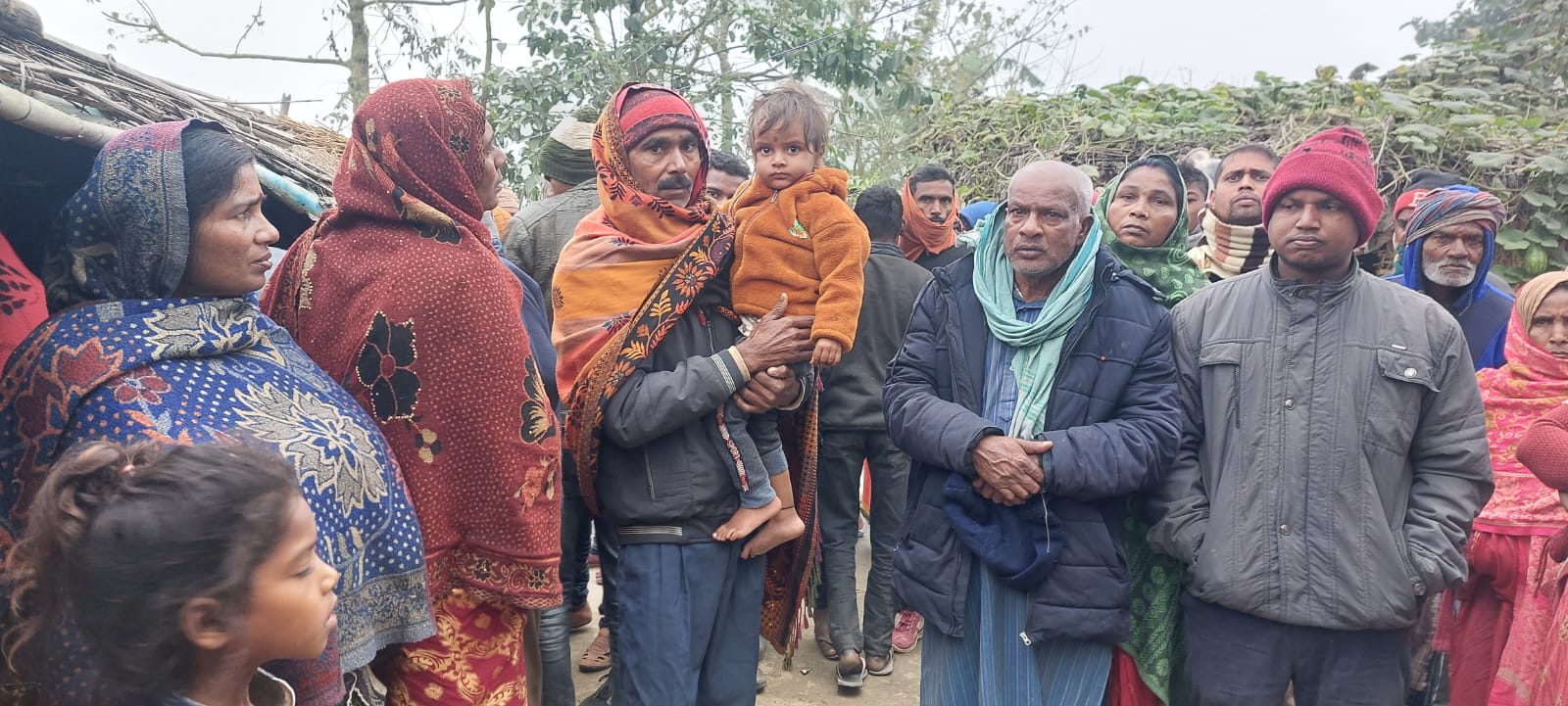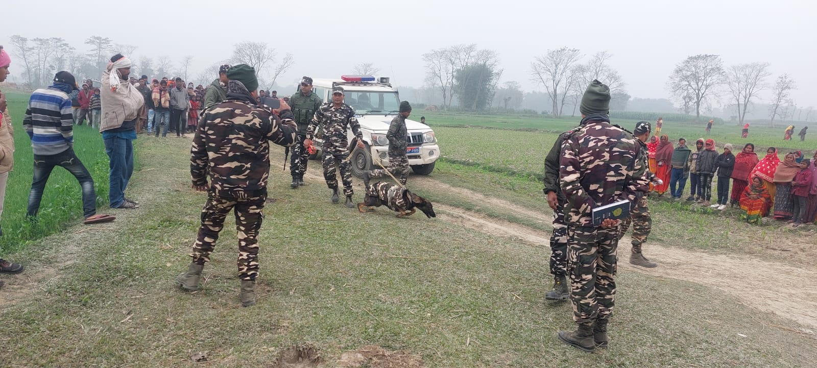 फोटो- घटनास्थल पर लोगों की भीड़, जांच में जुटे एसएसबी अधिकारी