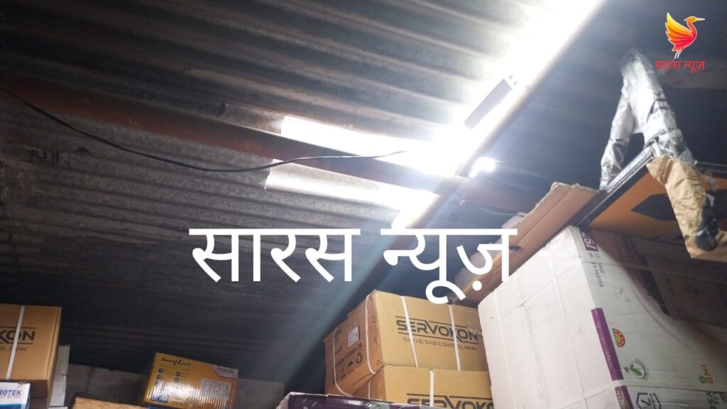 दुकान के छत के ऊपर लगे टीन का शेड कटा हुआ।