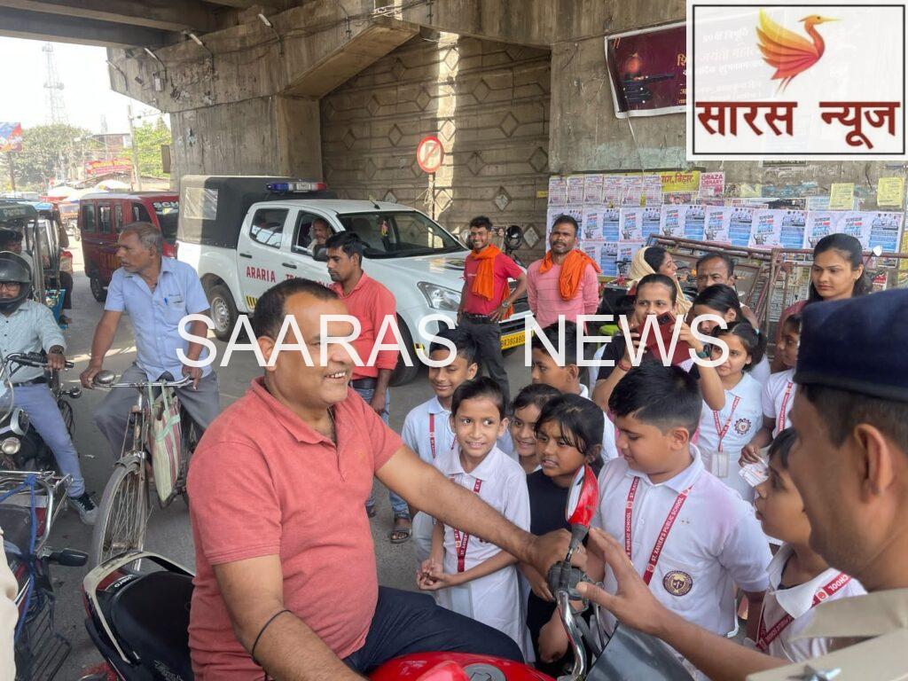 जिले में बढ़ते सड़क हादसों को ध्यान में रखते हुए एसपी अंजनी कुमार के निर्देश पर शनिवार को यातायात थानाध्यक्ष अरविंद कुमार के नेतृत्व में एक अनूठा यातायात जागरूकता अभियान चलाया गया। इस अभियान की खास बात यह थी कि इसमें निजी विद्यालय के दर्जनों छात्र-छात्राओं ने सक्रिय भागीदारी निभाई। यह आयोजन अररिया शहर के बस स्टैंड स्थित फ्लाईओवर ब्रिज के नीचे किया गया, जहां रोजाना बड़ी संख्या में लोग आवागमन करते हैं। यह स्थान शहर को अन्य जिलों और स्थानों से जोड़ने वाला मुख्य मार्ग भी है।