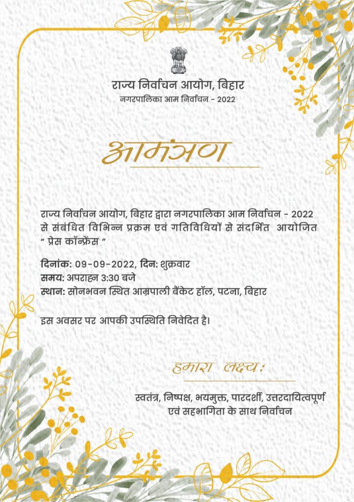 बिहार में नगर निकाय चुनाव की तैयारियों को अंतिम रूप दिया जा रहा है। सभी 38 जिलों के सभी निकायों में होने वाले चुनाव को लेकर निर्वाचन आयोग की तरफ से नए वार्ड और आरक्षण रोस्टर की लिस्ट भी जारी कर दी गई है। अब इंतजार सिर्फ तारीखों की घोषणा का है। जिसको लेकर संभावना जताई जा रही है कि आज बिहार निर्वाचन आयोग इसकी घोषणा कर सकती है।