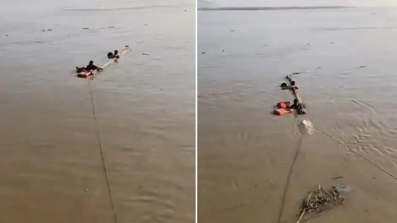 पटना के गंगा नदी में डूबी नाव, लोगों ने तैरकर बचाई जान।