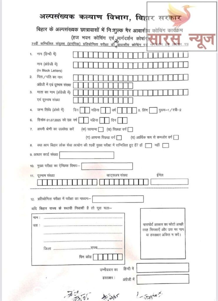 नोट: यह कोचिंग पूरी तरह निःशुल्क है तथा इसमें आवास की सुविधा उपलब्ध नहीं होगी। सभी कक्षाएँ हज भवन, पटना में निर्धारित समयानुसार संचालित की जाएंगी।