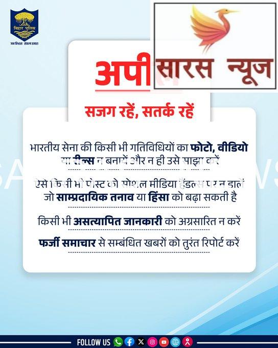 बिहार पुलिस की अपील: सेना की गतिविधियों से जुड़ी फोटो-वीडियो शेयर करने से बचें, अफवाह फैलाने वालों पर होगी कड़ी कार्रवाई
