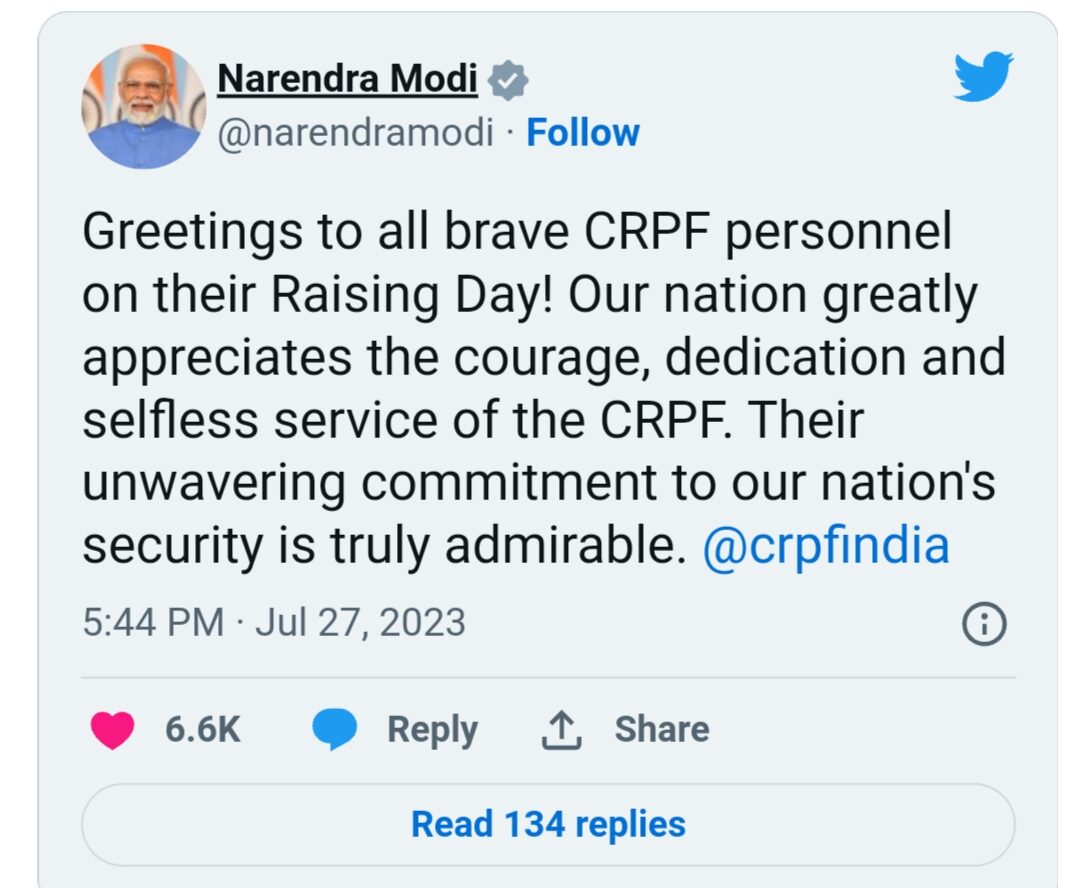 Read MorePost Views: 224 सारस न्यूज, वेब डेस्क। प्रधानमंत्री नरेन्द्र मोदी ने सीआरपीएफ के स्थापना दिवस पर सीआरपीएफ के सभी बहादुर…