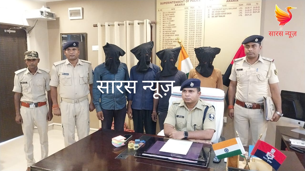 Read MorePost Views: 356 सारस न्यूज़, अररिया। गांजा के साथ गिरफ्तार, चार तस्करों की जानकारी देते एसपी अमित रंजन। अररिया पुलिस…