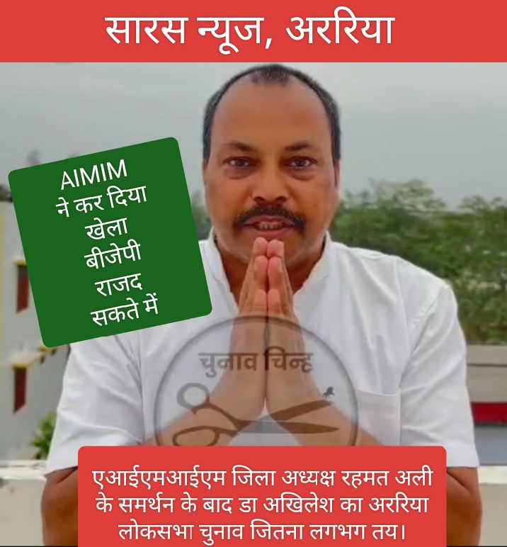 Read MorePost Views: 548 सारस न्यूज़, अररिया। अररिया लोकसभा के निर्दलीय प्रत्याशी सह पूर्व डीएसपी डॉ अखिलेश कुमार को एआईएमआईएम के…