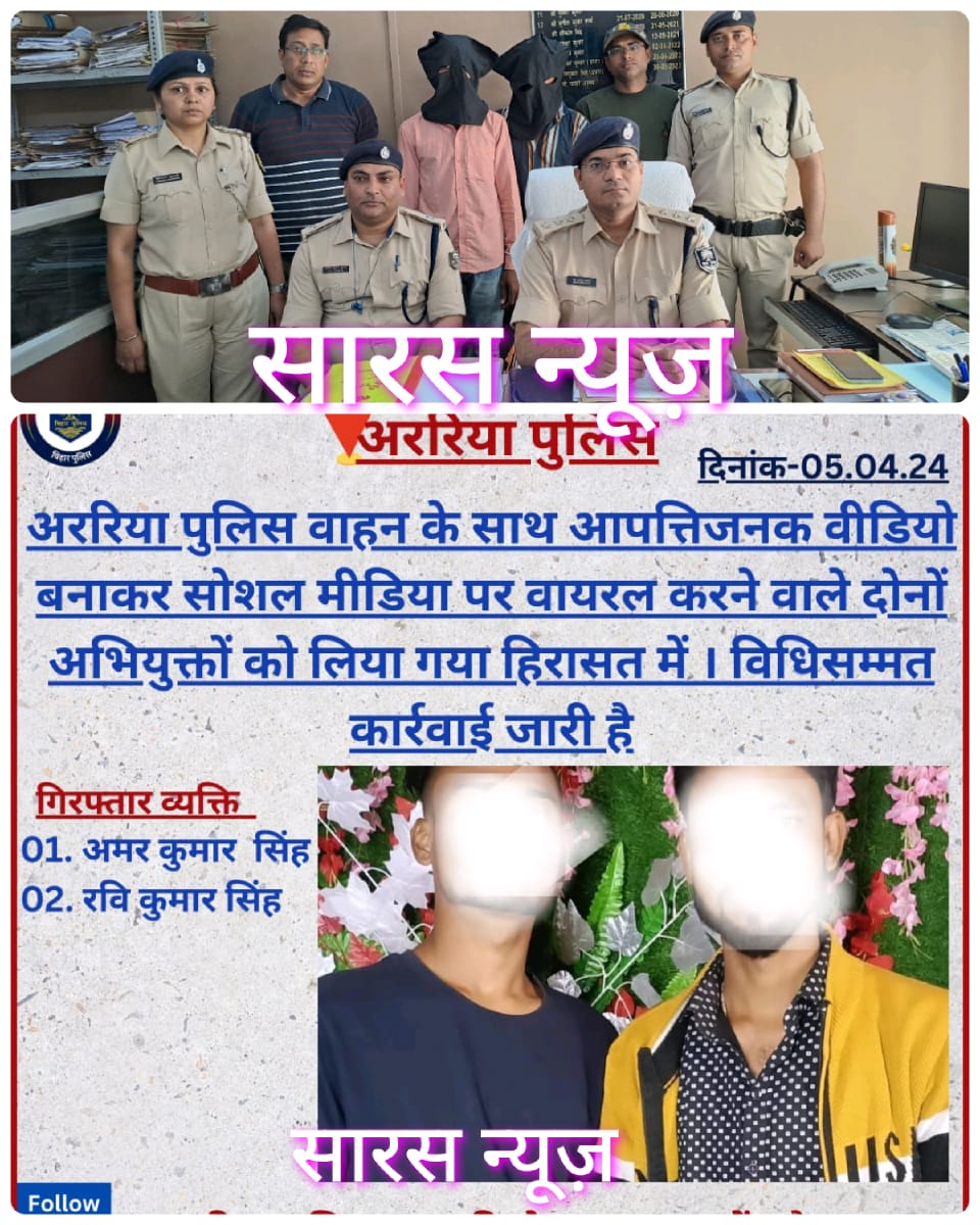 Read MorePost Views: 1,891 सारस न्यूज अररिया। वायरल वीडियो में पहला युवक, वायरल वीडियो में दूसरा युवक। एसपी अमित रंजन। जिला…
