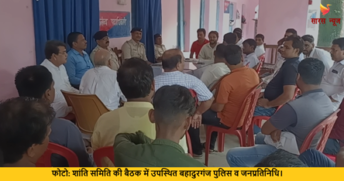 दुर्गा पूजा को लेकर बहादुरगंज थाना परिसर में शांति समिति की बैठक हुई आयोजित।