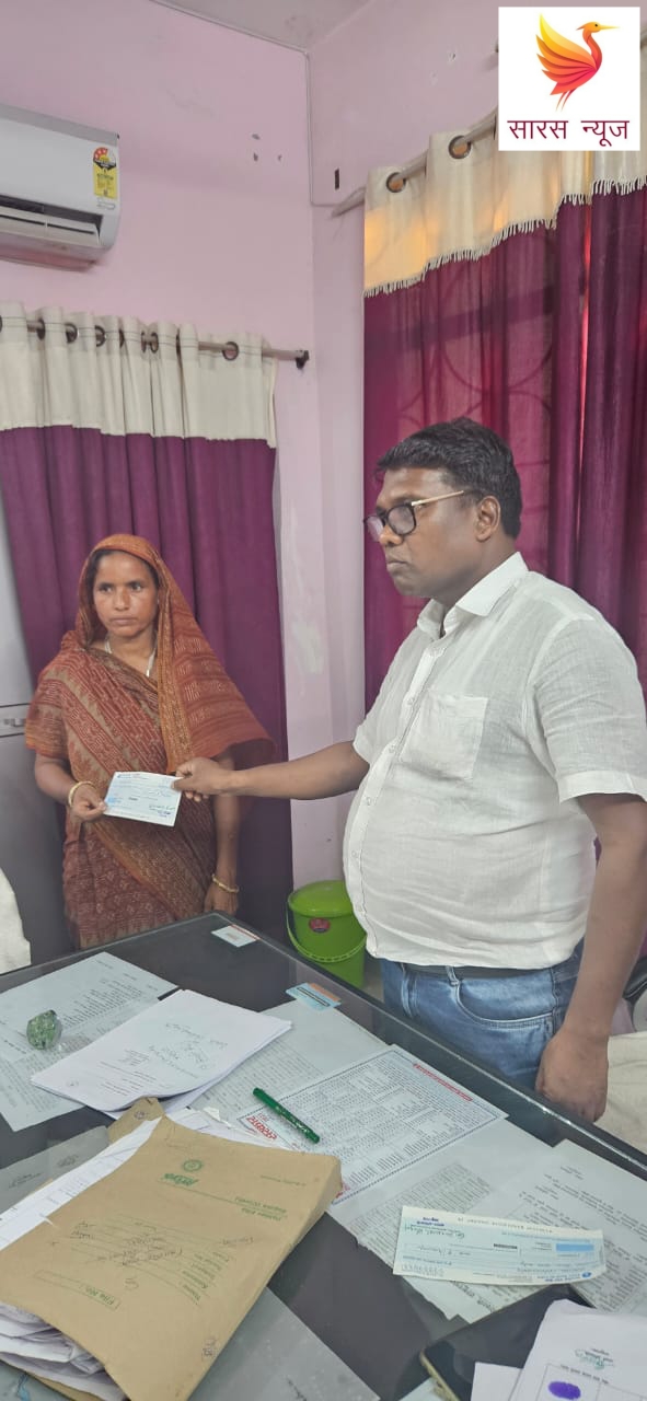 सड़क दुघर्टना में जान गंवाने वाले दो आश्रितों को दी गई 4- 4 लाख रुपए की अनुग्रह अनुदान राशि।