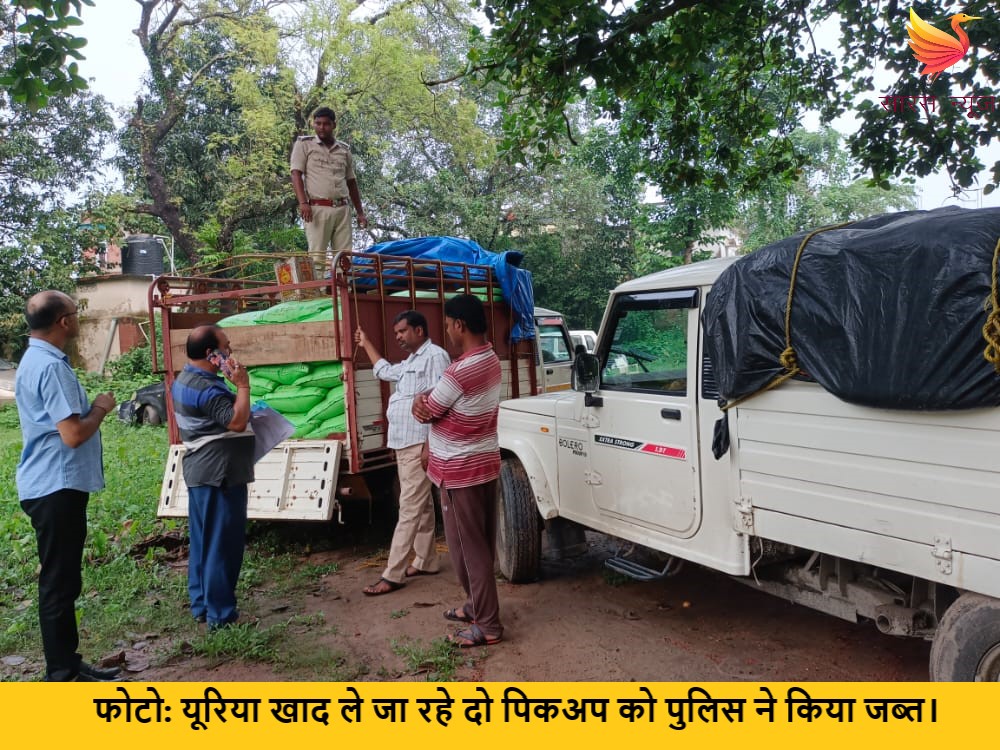 काला बाजारी की नियत से यूरिया खाद ले जा रहे दो पिकअप को पुलिस ने किया जब्त, कृषि विभाग की ओर से की गयी प्राथमिकी दर्ज।