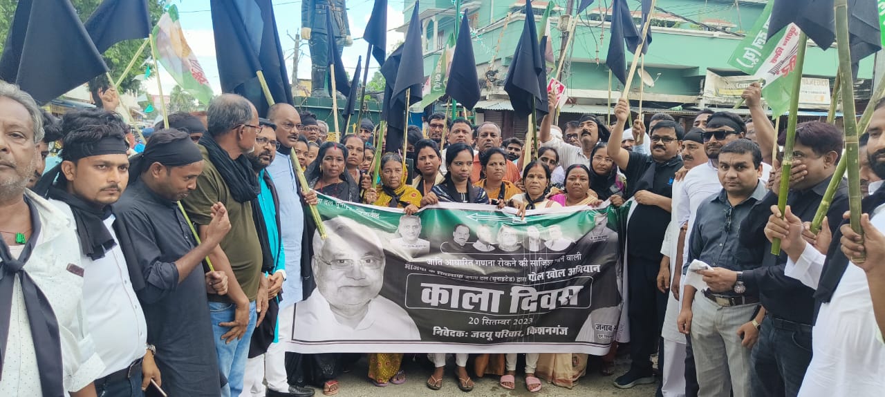 किशनगंज-जदयू परिवार द्वारा भाजपा सरकार के विरूद्ध काला दिवस मनाया गया। इस दौरान जदयू पदाधिकारियों एवं कार्यकर्ताओं ने कबीर चौक से सुभाषपल्ली चौक तक जदयू जिलाध्यक्ष सह पूर्व विधायक कोचाधामन मुजाहिद आलम, प्रमंडलीय प्रभारी सह पूर्व विधान पार्षद भूमि पाल राय, जदयू भागलपुर प्रमंडलीय प्रभारी प्रहलाद सरकार पूर्व जिला अध्यक्ष फिरोज अंजुम, किशनगंज अल्पसंख्यक जिला अध्यक्ष एहतेशाम अंजुम, कार्यालय प्रभारी जिला महासचिव रियाज अहमद, जिला महासचिव डॉ नजीरुल इस्लाम, जिला उपाध्यक्ष निजामुद्दीन, शिक्षा प्रकोष्ठ जिला अध्यक्ष सिकंदर हयात महादलित जिला अध्यक्ष बलराम दास, कला एवं संस्कृति प्रकोष्ठ जिला अध्यक्ष अंजार आलम, पूर्व कला एवं संस्कृति जिला अध्यक्ष जियाउर रहमान, प्रखंड अध्यक्ष बहादुरगंज हरिहर पासवान, कोचाधामन प्रखण्ड अध्यक्ष दानिश इकबाल, टेढ़ागाछ प्रखंड अध्यक्ष शाहिद आलम, पूर्व प्रखंड अध्यक्ष मुजफ्फर आलम, कमाल अंजुम के नेतृत्व में मार्च निकाला गया।