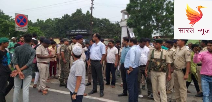 लेकिन, ट्रेन के गुजर जाने के बाद प्रदर्शनकारी फिर से पटरी पर आ गए और विरोध करते हुए पटरी पर बैठ गए। प्रशासन व पुलिस के अधिकारियों के द्वारा लोगों को लगातार समझाने की कोशिश की गई। लोग पटरी पर घटे जमे हुए थे और पुलिस वाले पटरी खाली करने के लिए प्रदर्शनकारियों को मना रहे थे। वहीं जुलूस मदरसा अंजुमन इस्लामिया से निकल कर लाइन, रुईधासा, ओवर ब्रिज और बस स्टैंड होता हुआ एनएच पहुंचा। जुलूस में शामिल लोग नुपूर शर्मा के गिरफ्तारी की मांग करते रहे। कुछ समय के लिए एनएच पर वाहनों का परिचालन रुक गया। रेलवे स्टेशन पर भी ट्रेन रोकने की कोशिश की गई। एनएच पर एसडीएम अमिताभ कुमार गुप्ता के समझाने पर जुलूस में शामिल लोग एनएच से हटे।