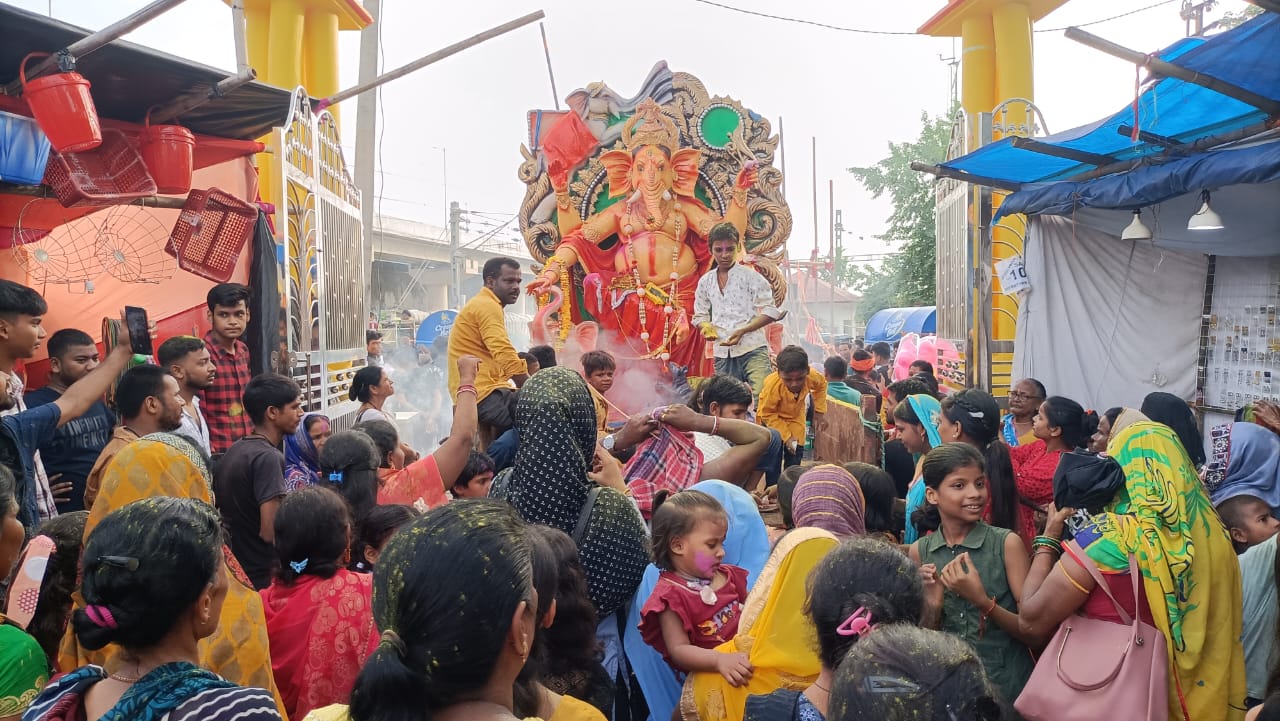 किशनगंज शहर के महावीर मार्ग रोड ठाकुरबारी स्थित श्री राधा कृष्ण मंदिर में बीते दस दिनों से चल रहे गणेश महोत्सव का शुक्रवार को गणेश प्रतिमा के विसर्जन के साथ समापन हो गया। गणेश चतुर्थी के दिन घर-घर में गणपति भगवान की प्रतिमा को विधि विधान से पूजा अर्चना कर विराजमान किया गया था। वहीं दस दिनों तक विधि विधान से पूजा आरती करके शुक्रवार ढोल-नगाड़ों, बैंड बाजा के साथ नाचते गाते शोभायात्रा निकाली गई। डे मार्केट स्थित धोबी घाट में गणपति भगवान की प्रतिमा का विसर्जन किया गया। गणपति बप्पा मोरया और अगले बरस तुम जल्दी आना के जयकारे लगते रहे। ढोल-नगाड़े के साथ श्रद्धालुओं ने काफी श्रद्धा और उत्साह से प्रतिमा को जलधारा में प्रवाहित किया। विसर्जन यात्रा में श्रद्धालुओं ने एक-दूसरे को रंग गुलाल लगाते हुए जमकर डांस किया। गणपति बप्पा मोरया, अबके बरस तू जल्दी आना के जयकारों से आज पूरा किशनगंज शहर गूंज उठा। शहर में पूरे दिन गणेश महोत्सव की धूम मची रही।
