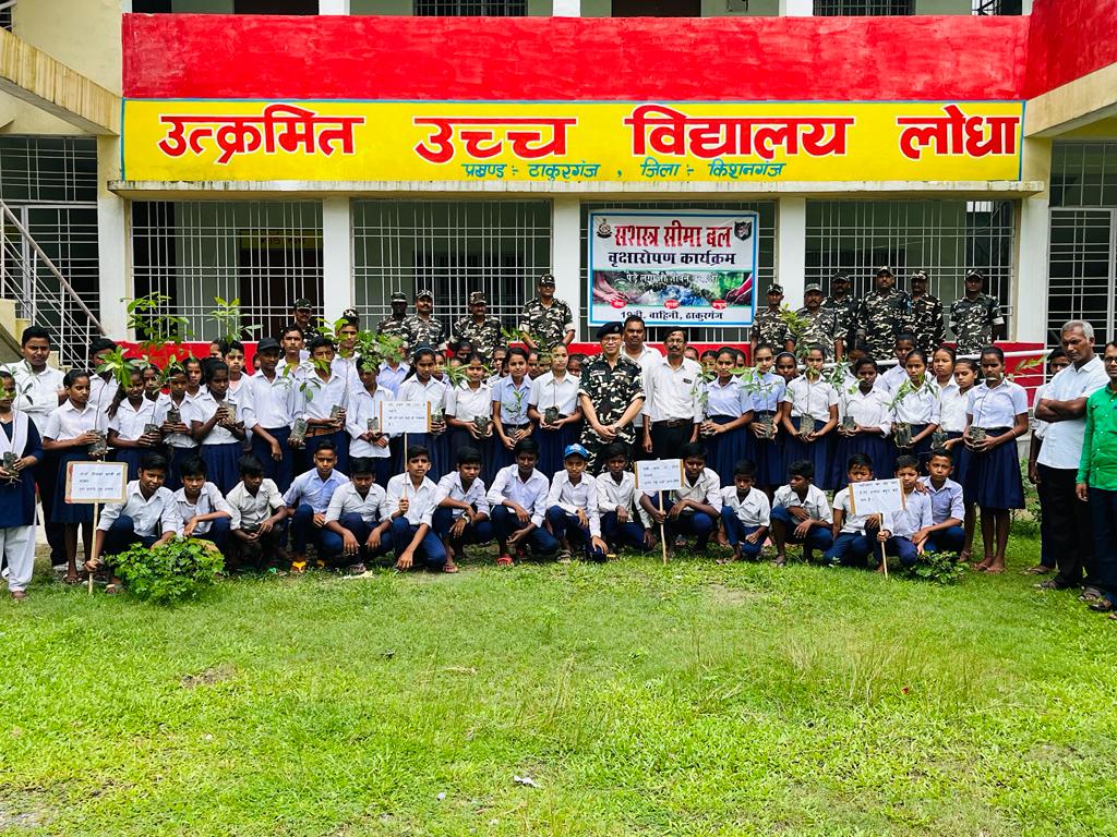गुरूवार को 19 वीं वाहिनी सशस्त्र सीमा बल, ठाकुरगंज के कार्यवाहक कमान्डेंट अनूप रोबा कच्छप निर्देश के आलोक में वृक्षारोपण अभियान-2023 के तहत वाहिनी की डी समवाय नावडुबा के उत्क्रमित उच्च विद्यालय लोधा में वृक्षारोपण कार्यक्रम का आयोजन किया गया। इस दौरान एसएसबी अधिकारियों द्वारा पर्यावरण संरक्षण को ले स्कूली बच्चों को जागरूक भी किए गए। कार्यक्रम की शुरुआत 19वीं वाहिनी सशस्त्र सीमा बल ठाकुरगंज के उप कमान्डेंट एम. ब्रोजेन सिंह द्वारा की गई। शुरुआत वृक्षारोपण कार्यक्रम से की गई, जिसमें छात्र-छात्राओं, अध्यापकों एवं बलकर्मियों द्वारा विद्यालय के परिसर में वृक्षारोपण किया गया।