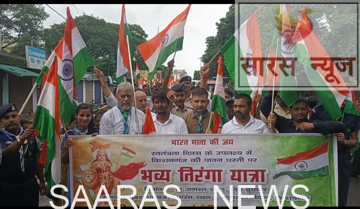 किशनगंज शहर के दे-मार्केट मातृ मंदिर से वीर शिवाजी सेना के बैनर तले तिरंगा यात्रा निकाली गई, जो शहर के विभिन्न चौक-चौराहों से होती हुई धर्मशाला रोड स्थित मनोरंजन क्लब में संपन्न हुई। तिरंगा यात्रा में वीर शिवाजी सेवा के अध्यक्ष सुमित कुमार, रेड क्रॉस सोसाइटी के सचिव मिक्की साहा, अधिवक्ता शिशिर कुमार दास, अधिवक्ता अजीत दास, भारत स्काउट गाइड के सचिव अबू रेहान, सौरभ कुमार व अन्य गण्यमान्य लोग मौजूद थे।