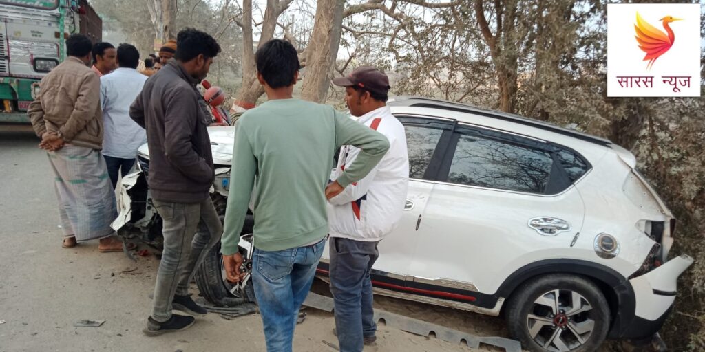 बहादुरगंज एलआरपी चौक के समीप ट्रक एवं चार चक्का वाहन मे हुई भीषण टक्कर।