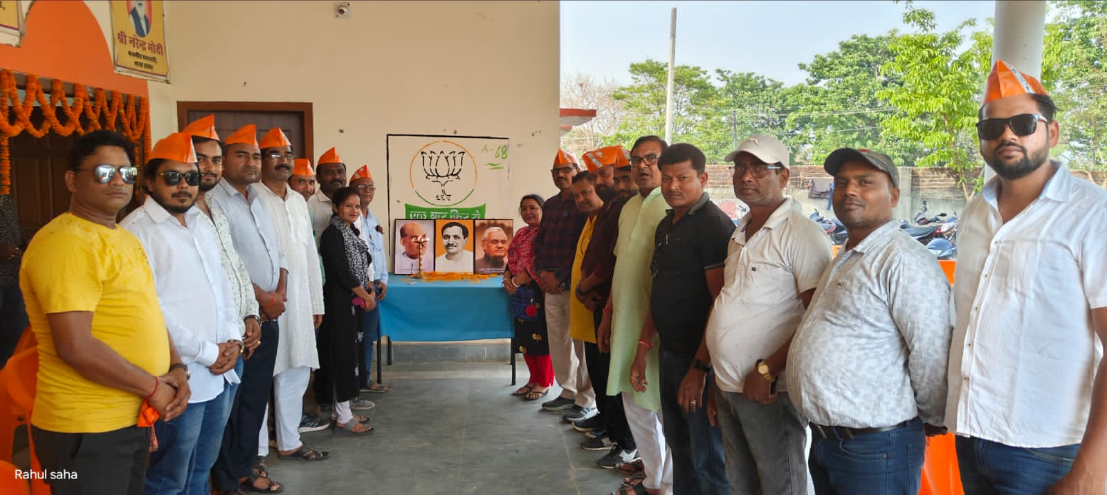 भारतीय जनता पार्टी जिला कार्यालय में 45 वां स्थापना दिवस समारोह पर भाजपा ध्वजारोहण किया गया। कार्यक्रम की शुरुआत पंडित दीनदयाल उपाध्याय, डॉ श्यामा प्रसाद मुखर्जी एवं अटल बिहारी वाजपेई जी तेल चित्र फोटो पर पुष्प अर्पित कर, जिला महामंत्री मनीष सिन्हा ने भाजपा ध्वजारोहण किया साथ ही वंदे मातरम् गीत के साथ भाजयुमो जिलाध्यक्ष अंकित कोशिक एवं नगर अध्यक्ष अरविंद मंडल के नेतृत्व में वृक्षारोपण किया गया। इस अवसर पर सभी पार्टी के कार्यकताओं ने संकल्प लिया अबकी बार 400 पार के लक्ष्य को अर्जित करना है। इस मौके पर सुबोध माहेश्वरी जिला प्रवक्ता, मनोज मजुमदार, हरि किशोर साह, कमलेश शर्मा, मंटु प्रजापति, शिवम् साह, दूर्गा स्वर्णकार,आशा, आदि कार्यकर्ता उपस्थित हुए।