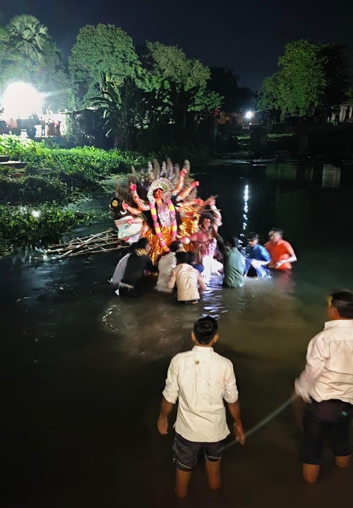 सीमावर्ती क्षेत्र गलगलिया में विजयादशमी के मौके पर मंगलवार को मां के दर्शन के लिए भक्त भारी संख्या में सड़को पर उतरे। वहीं गलगलिया रेलवे पूजा पंडाल पर दर्शन करने वालों का तांता लगा रहा। मां दुर्गा के भजनों से पूरा इलाका भक्तिमय हो उठा। शाम को विसर्जन में लोगों ने झूमते नाचते हुए शोभा यात्राएं निकाली एवं नवरात्रि में मां दुर्गा की आराधना के लिए स्थापित की गई मूर्ति का विधिवत रूप से रेलवे पूजा कमिटी द्वारा विसर्जन किया गया। विसर्जन के दौरान काफी संख्या में लोग जुटे रहे। माता की प्रतिमा पूजा स्थल से गलगलिया बाजार होता हुआ पुराना बसस्टैंड साहनी टोला होता हुआ घोषपाड़ा के नदी में विसर्जित की गई। विसर्जन के दौरान भक्ति गीत व फ़िल्मी गीतों पर युवा एवं महिलाएं थिरकते नजर आये। इसके पूर्व महिलाएं सामूहिक रूप से सिंदूर खेला खेलतीं देखी गई। मां को सिन्दूर लगाने के बाद महिलाएं एक दूसरे को सिंदूर लगाई। बताया गया कि मां का प्रिय रंग लाल होना इसकी मुख्य वजह है। बंगाली परंपरा के मुताबिक विवाहित महिलाओं ने मां को सिंदूर लगाने के साथ-साथ एक दूसरे के भी गालों पर सिंदूर लगाया।