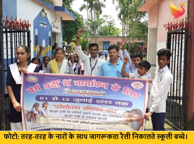 आदि द्वारा जागरूक किया गया। विद्यालय के पोषक क्षेत्र में रैली निकाल कर लोगों को यह संदेश दी गई कि जो बच्चे अपने अपने घरों में हैं विद्यालय नहीं आ रहे हैं उन्हें भी विद्यालय आना है। इस जागरूकता अभियान के तहत सभी अभिभावकों को जागरूक होकर अपने बच्चे को प्राथमिक विद्यालय में नामांकन करवाएं और पढ़ने के लिए भेजें। जिससे कि उनके भविष्य को नई ऊंचाई मिल सके और शिक्षित होकर वे अपने गांव का नाम रोशन करें। बता दें कि आठवीं पास सभी छात्र-छात्राओं का नामांकन नौवीं में हो जाए, इसके लिए शिक्षा विभाग द्वारा 01 जुलाई से 15 जुलाई तक प्रवेशोत्सव अभियान चलाया जा रहा है।