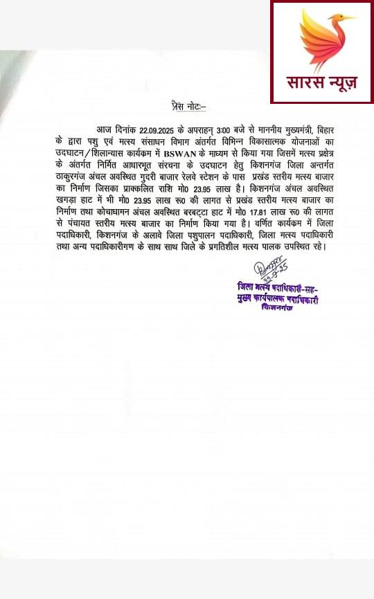 सारस न्यूज़, किशनगंज।