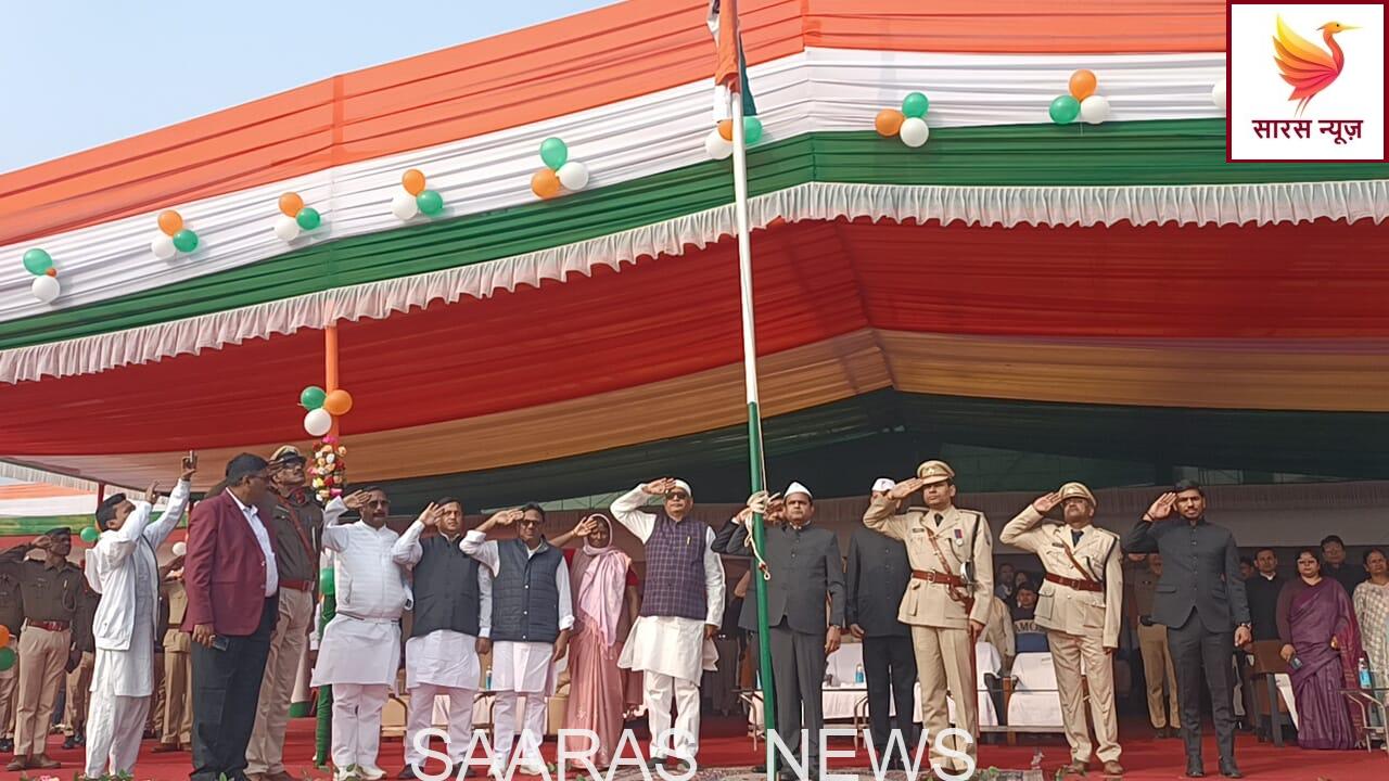 77वें गणतंत्र दिवस के गौरवशाली अवसर पर आज किशनगंज शहर के ऐतिहासिक शहीद अशफाक उल्लाह खां स्टेडियम में मुख्य राजकीय समारोह का आयोजन बेहद हर्षोल्लास के साथ किया गया। इस अवसर पर पूर्णिया प्रमंडल के आयुक्त राजेश कुमार ने मुख्य अतिथि के रूप में शामिल हुए और विधिवत झंडोत्तोलन कर तिरंगे को सलामी दी।प्रशासनिक और राजनीतिक हस्तियों की रही मौजूदगीसमारोह के दौरान जिले के आला अधिकारी और जनप्रतिनिधि एक साथ मंच पर नजर आए। झंडोत्तोलन के समय मुख्य रूप से जिला पदाधिकारी विशाल राज, पुलिस अधीक्षक संतोष कुमार, किशनगंज विधायक कमरुल होदा, उप विकास आयुक्त प्रवीण कुमार झा एवं जिले के अन्य वरिष्ठ प्रशासनिक व पुलिस पदाधिकारी मौजूद थे।