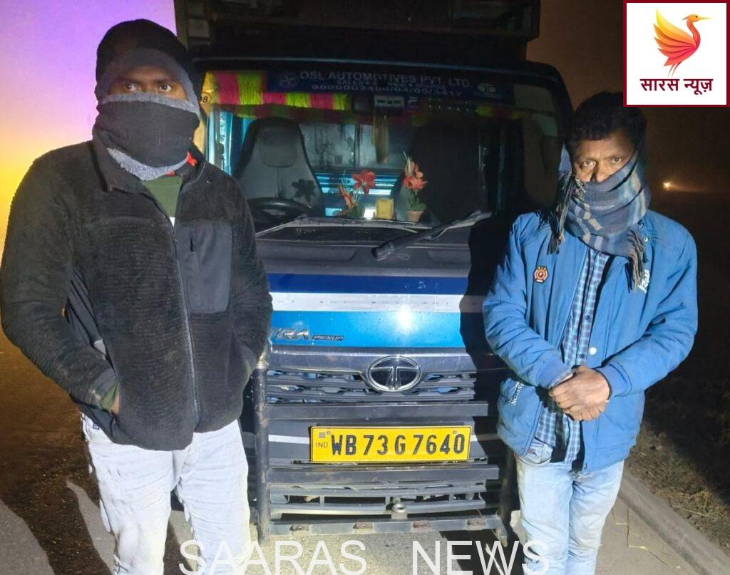 किशनगंज पुलिस ने पशु क्रूरता के विरुद्ध कार्रवाई करते हुए पठामारी थाना क्षेत्र से दो लोगों को गिरफ्तार किया है। गिरफ्तार आरोपियों की पहचान मोहम्मद अरमान और प्रमुद्दीन के रूप में हुई है। दोनों को एक पिकअप वाहन (रजिस्ट्रेशन संख्या: WB 73 G 7640) से तीन भैंसों को क्रूरतापूर्वक ले जाते हुए पकड़ा गया।