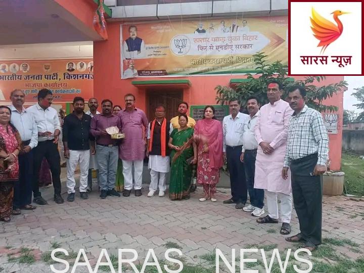 किशनगंज में एनडीए के कार्यकर्ताओं ने बुधवार को स्थानीय भारतीय जनता पार्टी जिला कार्यालय में बिहार सरकार के नए मुख्यमंत्री सम्राट चौधरी के बनने पर जश्न मनाया। इस अवसर पर जिलाध्यक्ष गोपाल मोहन सिंह ने कार्यक्रम की अध्यक्षता की और कार्यकर्ताओं ने अपने विचार व्यक्त किए।कार्यकर्ताओं ने कहा कि सम्राट चौधरी के मुख्यमंत्री बनने से प्रदेश में विकास की गंगा और तेजी से बढ़ेगी और नीतीश कुमार के द्बारा किया गया विकास और सुशासन को आगे बढ़ाया जाएगा। मुख्य वक्ताओं में जिलाध्यक्ष गोपाल मोहन सिंह, बहादुरगंज विधानसभा प्रत्याशी लोजपा (र) मो०कलीमुद्दीन, हरिराम अग्रवाल, ज्योति कुमार सोनू, पंकज कुमार साहा, राजेश गुप्ता, सुबोध माहेश्वरी, जय किशन प्रसाद, सोनी देवी (महिला मोर्चा जिलाध्यक्ष), रेखा मिश्रा, अरविंद मंडल आदि ने अपने विचार रखे।इस अवसर पर सैकड़ों कार्यकर्ता उपस्थित थे, जिनमें मनोज मुजमदार, कोशल आंनद, शिवम साहा, संजय पासवान, अशोक गुप्ता, हरि किशोर साह, शुभम राजा सिन्हा, विशाल स्वर्णकार, लखवीर कोर, दूर्गा स्वर्णकार, लता देवी, मीरा रामदास, श्रृष्टि कुमारी, रीता देवी आदि शामिल थे।