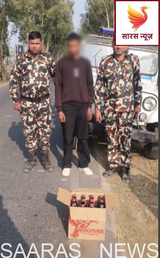 किशनगंज जिले के छत्तरगाछ पुलिस पिकेट द्वारा की गई कार्रवाई में एक व्यक्ति बुधलाल हेमब्रम, उम्र 22 वर्ष, पिता सुपौल हेमब्रम, निवासी ग्राम बारहटिया, थाना पहाड़कट्टा, जिला किशनगंज को 7.8 लीटर विदेशी शराब (बीयर) के अवैध परिवहन के क्रम में गिरफ्तार किया गया है। गिरफ्तार व्यक्ति के विरुद्ध अग्रेतर विधिसम्मत कार्रवाई की जा रही है।