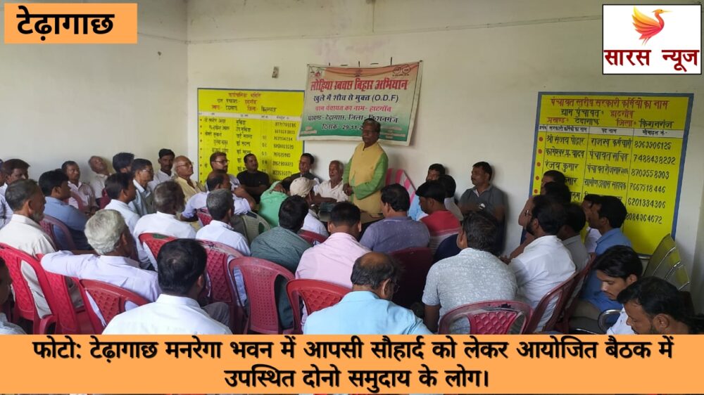 टेढ़ागाछ प्रखंड क्षेत्र अंतर्गत हॉट गांव पंचायत स्थित मनरेगा भवन में सद्भाव कमीटी के संचालन करने हेतु, पूर्व प्रमुख रामेश्वर सिंह की अध्यक्षता में बैठक का आयोजन किया गया। जिसमें प्रखंड के दोनों समुदाय हिन्दू एवं मुस्लिम सामाजिक कार्यकर्ता जनप्रतिनिधि, एवं बुद्धिजीवियों ने भाग लिया। इस संबंध में जिला परिषद सदस्य प्रतिनिधि अकमल शम्सी ने बताया कि समाज में आपसी भाईचारा कायम रहे और हमलोगों के इस सौहार्दपूर्ण माहौल को कोई बिगाड़े नहीं, इसको लेकर इस कमीटी को हमलोगों ने आपस में मिलकर बनाया है जो भविष्य में सद्भावना बनाए रखने के लिए काम करेगा। इसके लिए विधिवत आपस में दोनो समुदाय के लोगों द्वारा आपसी सहमति से बैठक कर अध्यक्ष, सचिव, कोषाध्यक्ष एवं सदस्यों का चुनाव किया गया है।
