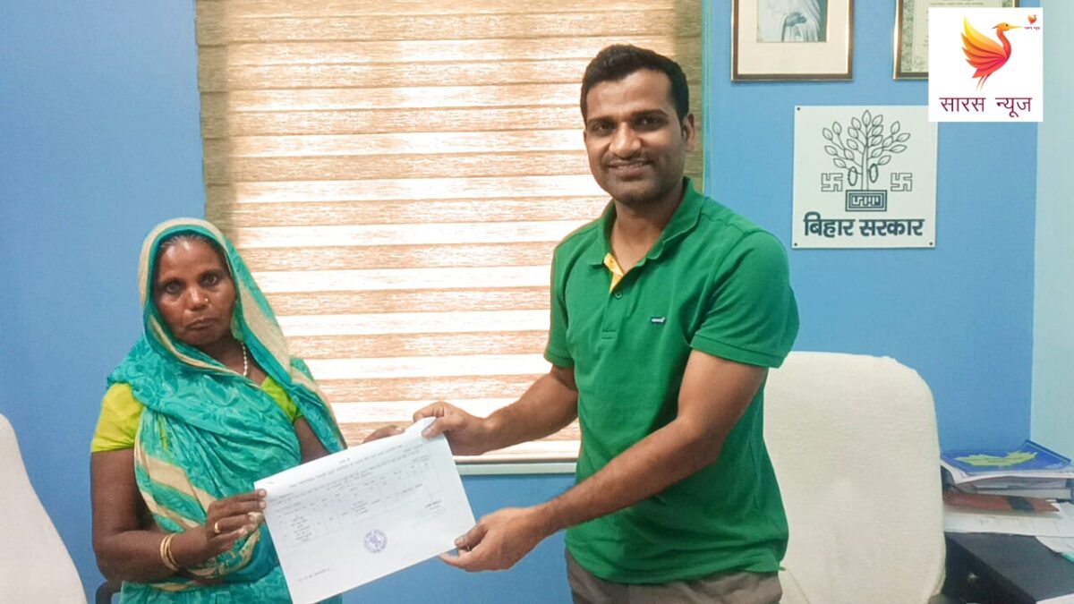 टेढ़ागाछ अंचल कार्यालय में शनिवार को सीओ अजय चौधरी ने भूमिहीन महिला मचीय देवी को तीन डिसमिल जमीन का बासगीत पर्चा दिया। इस दौरान उन्होंने कहा लाभुक मचीय देवी एक गरीब परिवार की विधवा महिला है। जिन्हें तीन डिसमिल जमीन बासगीत पर्चा बनाकर प्रमाणपत्र दिया गया है। अब उस जमीन पर लाभुक अपना घर बनाकर गुजर बसर कर सकते हैं। ज्ञात हो कि मचीय देवी झुनकी मुशहरा पंचायत स्थित फराहबड़ी के वार्ड नंबर 11 की विधवा महिला हैं। बासगीत पर्चा मिलने पर उन्होंने ख़ुशी जाहिर की। उन्होंने सीओ को साधुवाद दिया है।