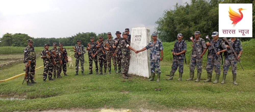 एसएसबी और नेपाल सशस्त्र पुलिस बल के साथ पाठामारी सीमा चौकी में मीटिंग व बॉर्डर पर की गई संयुक्त गश्त।