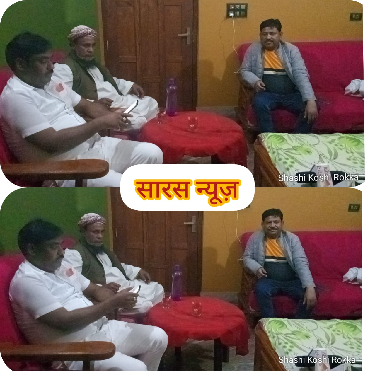 किशनगंज- उपअररिया – उपपूर्णिया से कांग्रेस के एमएलसी के उम्मीदवार बनाए जाने के बाद बहादुरगंज के पूर्व विधायक कांग्रेस के वरिष्ठ नेता तौसीफ आलम पहुंचे जदयू के वरिष्ठ नेता सह जिला परिषद प्रतिनिधि अहमद हुसैन की आवास पर। दोनों वरिष्ठ नेताओं के बीच एमएलसी चुनाव की रणनीति को लेकर हुई चर्चा गौरतलब हो कि कांग्रेस ने किशनगंज-अररिया – पूर्णिया के लिए कांग्रेस के वरिष्ठ नेता एवं बहादुरगंज के पूर्व विधायक तौसीफ आलम को एमएलसी उम्मीदवार बनाया है।जिसको लेकर जिले में चर्चा का माहौल बना हुआ है इसी दरम्यान टिकट मिलने के उपरांत पहली बार ठाकुरगंज पहुंचे कांग्रेस के वरिष्ठ नेता एमएलसी की उम्मीदवार तौसीफ आलम।