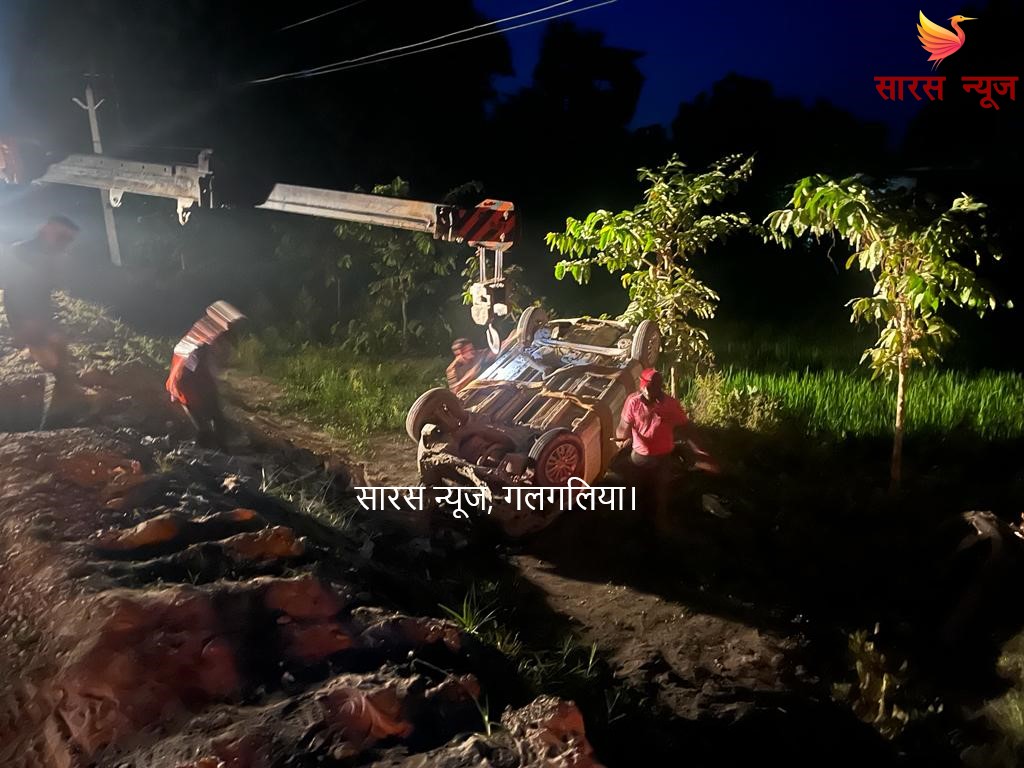 गलगलिया थाना क्षेत्र के बन्दरबाड़ी में एक अनियंत्रित स्विफ्ट डिजायर कार UP65/CL 6634 सड़क के नीचे गड्ढे में पलट गया। जिसमें चालक सहित तीन लोग घायल हो गए। यह हादसा बुधवार की दोपहर करीब 2:15 बजे एनएच 327ई के बन्दरबाड़ी चौक के पास हुई। वहीं, हादसा होते ही गाड़ी में सवार लोगों के चीखने चिल्लाने की आवाज सुनकर स्थानीय लोग वहां पहुंचे और घायल सभी तीन लोगों को गाड़ी से बाहर निकलने में मदद किया। सूचना पर गलगलिया थानाध्यक्ष सरोज कुमार भी मौके पर पहुंचकर घायलों को इलाज के लिए प्राथमिक स्वास्थ्य केंद्र ठाकुरगंज ले गए जहाँ मामूली चोट के कारण प्राथमिक उपचार हुआ। इलाज के दौरान तीनों में शराब का सेवन की भी पुष्टि हुई। गाड़ी में सवार चालक सहित सभी शराब का सेवन किये हुए थे। पूछ-ताछ में तीनों ने अपना नाम व पता बजरंग सिंह उम्र 40 वर्ष पिता- ललन सिंह, साकिन- परशुरामपुर, कैमुर (बिहार), कुंडल सिंह उम्र 35 वर्ष पिता- ललन सिंह, साकिन अस्सी, भेलूपुर, वाराणसी (उत्तर प्रदेश), राजू कुमार सिंह उम्र 32 वर्ष पिता- उमेश सिंह उर्फ परमेश्वर सिंह, साकिन – जरादी ( सदोखर ) पोस्ट – सदोखर, जरारही, रोहतास (बिहार) बताया।