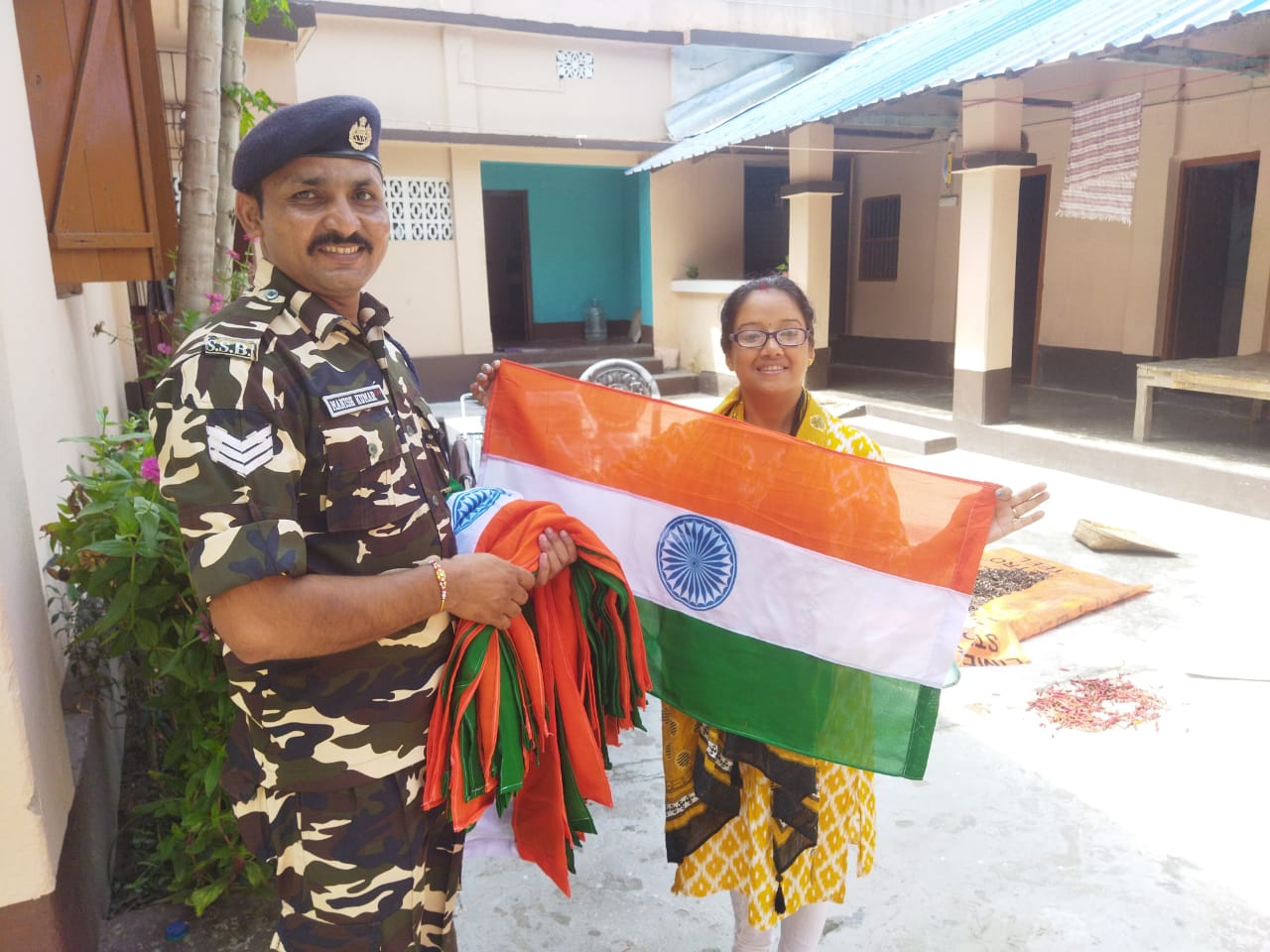 सारस न्यूज की डायरेक्टर स्वाति राय ने भी इसी क्रम में जवानों से तिरंगा झंडा लिया।