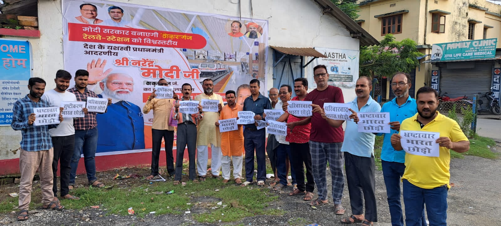 पूर्व भाजयुमो जिलाध्यक्ष अमित सिंहा, नगर मंडल अध्यक्ष अतुल सिंह, युवा मोर्चा के नगर अध्यक्ष बिट्टू साह आदि ने बताया कि नौ अगस्त को ही भारत छोड़ो आंदोलन शुरू हुआ था और महात्मा गांधी ने अंग्रेजों से साफ-साफ भारत छोड़ने के लिए कहा दिया था। वैसे ही भ्रष्टाचार, परिवारवाद और तुष्टिकरण को भारत छोड़ना होगा। इनलोगों ने बताया कि पीएम नरेन्द्र मोदी ने इस संबंध में कहा भी है कि भारत को एक विकसित राष्ट्र बनाने का हमारा सपना और प्रतिबद्धता है, लेकिन कुछ बुराइयां हैं जो बाधा बन गई हैं। पूरा भारत एक आवाज में गूंज रहा है- भ्रष्टाचार, वंशवाद, तुष्टिकरण भारत छोड़ो। उन्होंने इस पर रेखांकित किया कि भारत में ये बुराइयां देश के लिए एक बड़ी चुनौती हैं और विश्वास जताया कि देश इन बुराइयों को हरा देगा।