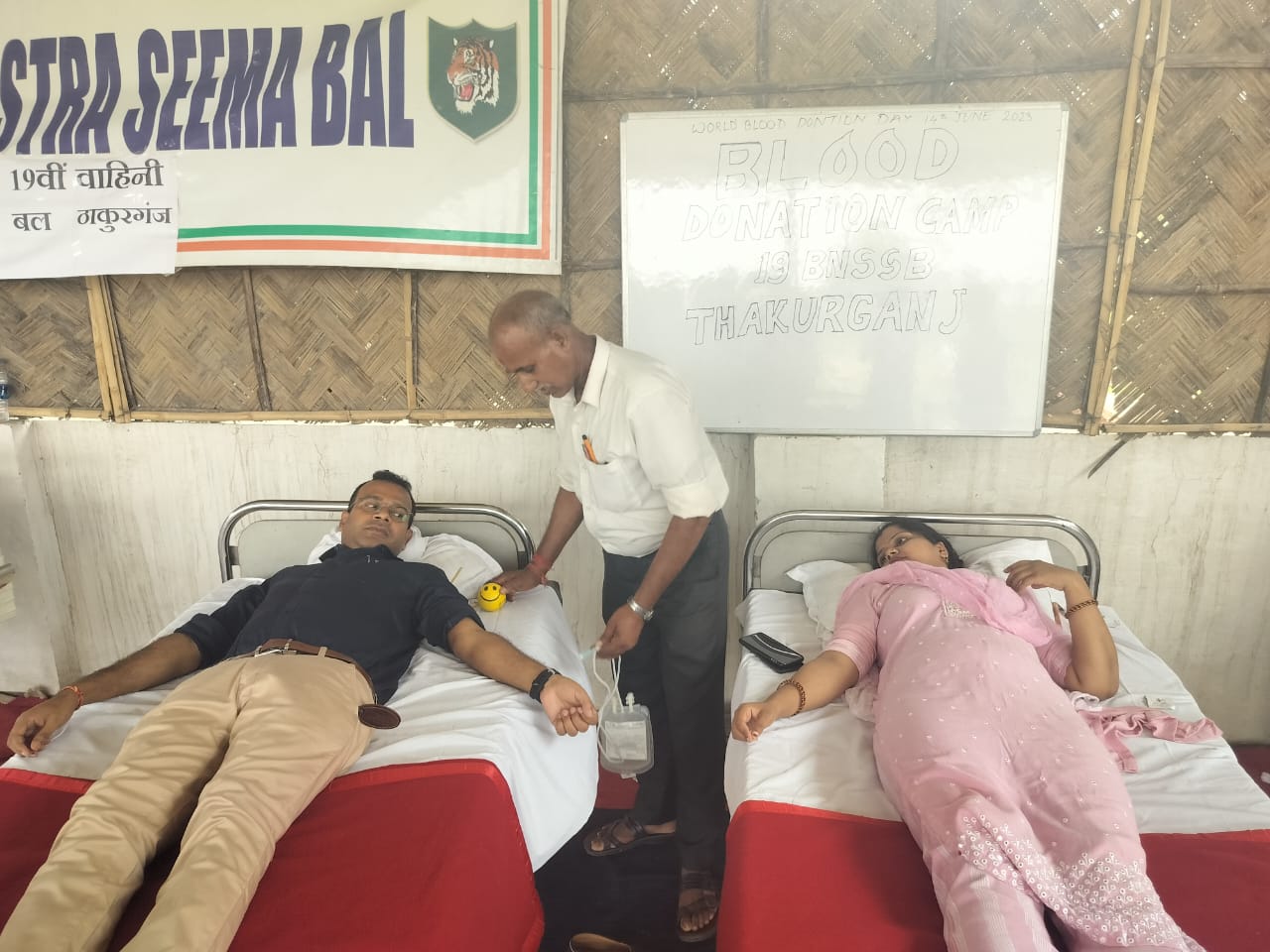 बुधवार को विश्व रक्तदाता दिवस के उपलक्ष्य में 19वीं वाहिनी एसएसबी मुख्यालय ठाकुरगंज में कार्यवाहक कमान्डेंट अनूप रोबा कछप की मौजूदगी में रक्तदान शिविर का आयोजन किया गया जिसमें प्रभारी चिकित्सा पदाधिकारी डॉ अनिल कुमार एवं उनकी धर्मपत्नी प्रियंका कुमारी सहित 24 एसएसबी कार्मिकों ने अपना रक्तदान किया। शिविर में सहायक मुख्य चिकित्सा अधिकारी डॉ सुरेश प्रसाद एवं कार्यवाहक कमान्डेंट अनूप रोबा कछप ने पहुंचकर रक्तदान के लिए एसएसबी के जवानों की हौसला अफजाई की।