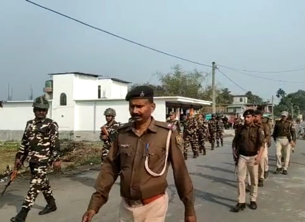 होली व शब-ए-बारात पर्व के दौरान इलाके में शांति व्यवस्था को कायम रखने के उद्देश्य और असामाजिक तत्वों को कड़ी चेतावनी देने के लिए मंगलवार को गलगलिया पुलिस और एसएसबी ने गलगलिया थाना क्षेत्र विभिन्न इलाकों में फ्लैग मार्च निकाला। गलगलिया थाना के स०अ०नि० शाहनवाज खाँ एवं एसएसबी 41वीं बटालियन भातगाँव समवाय के सहायक कमांडेंट सुरेंद्र जी के नेतृत्व में गलगलिया बॉर्डर, बाजार, बसस्टैंड, चुरली, पथरिया सहित कई इलाकों से पुलिस व एसएसबी जवानों का फ्लैग मार्च गुजरा। ताकि लोग भयमुक्त माहौल में खुशी-खुशी पर्व मना सकें। काफी संख्या में पुलिस बल व एसएसबी को देखकर लोग घरों व दुकानों से बाहर निकल आए और पुलिस को फ्लैग मार्च करते देख टकटकी लगाकर देखने लगे।
