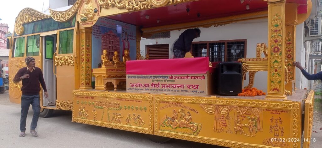 आर्यिका शिरोमणि ज्ञानमतीमाताजी के पावन आशीर्वाद और प्रेरणा से भगवान ऋषभदेव सहित पांच जैन तीर्थंकरों एवं भगवान श्री रामचंद्र जी की जन्मभूमि शाश्वत अनादिकालीन तीर्थ अयोध्या तीर्थ के विकास एवं प्रभावना की लेकर जागरूकता के लिए संपूर्ण भारतवर्ष में अयोध्या तीर्थ प्रभावना रथ का प्रवर्तन किया जा रहा है।