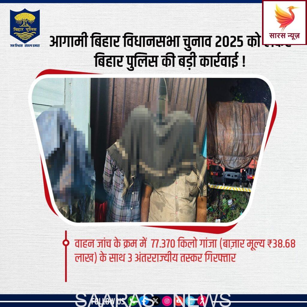 बिहार पुलिस ने बताया कि आदर्श आचार संहिता के तहत चलाए जा रहे विशेष अभियान के दौरान यह सफलता मिली है। गिरफ्तार तस्करों से पूछताछ जारी है और उनके नेटवर्क से जुड़े अन्य लोगों की तलाश भी की जा रही है।