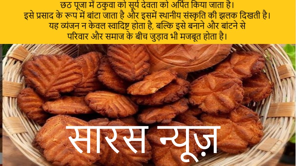 छठ पूजा में ठकुवा को सूर्य देवता को अर्पित किया जाता है। इसे प्रसाद के रूप में बांटा जाता है और इसमें स्थानीय संस्कृति की झलक दिखती है। यह व्यंजन न केवल स्वादिष्ट होता है, बल्कि इसे बनाने और बांटने से परिवार और समाज के बीच जुड़ाव भी मजबूत होता है।
