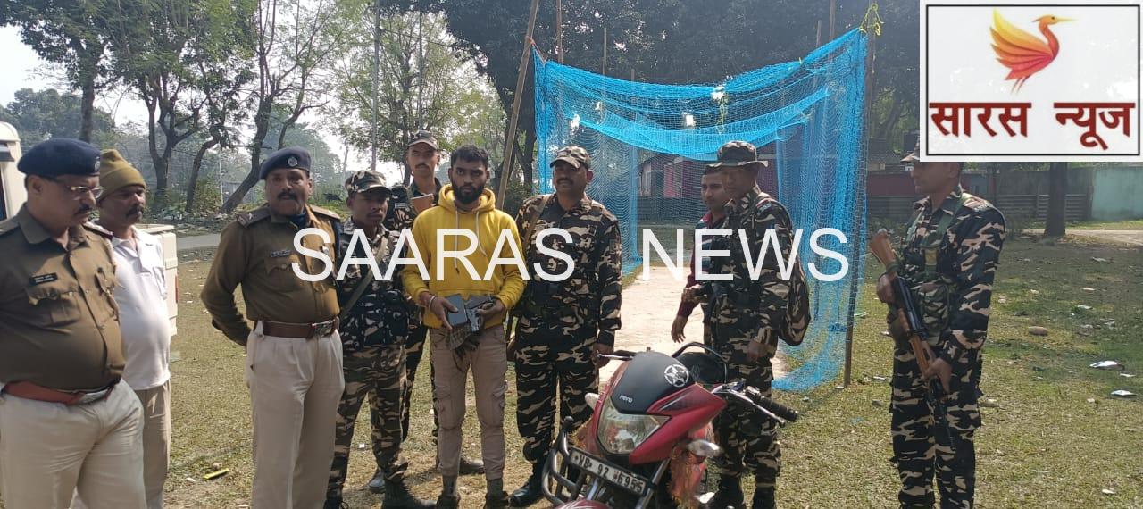 गश्ती दल ने भारत-नेपाल सीमा स्तंभ संख्या 110/04 से लगभग 4 किमी अंदर भारत की ओर, काली मंदिर, रेलवे कॉलोनी के पास सघन तलाशी अभियान चलाया। इस दौरान लगभग 12:55 बजे ठाकुरगंज बाजार की ओर से आ रहे एक मोटरसाइकिल सवार को रोका गया। तलाशी लेने पर युवक के पास से एक 7.65MM पिस्टल (USA मेड), एक मैगजीन, एक जिंदा कारतूस, दो मोबाइल फोन (Realme और Itel), और ₹100 की भारतीय मुद्रा बरामद हुई।