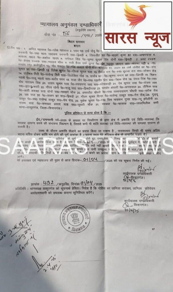 प्राप्त जानकारी के अनुसार, ठाकुरगंज पुलिस के प्रतिवेदन के आधार पर न्यायालय अनुमंडल दंडाधिकारी किशनगंज के द्वारा केश नंबर 56/ M/2026 धारा 126 BNSS दर्ज किया गया है। इसमें ठाकुरगंज के कई प्रतिष्ठित लोगों का नाम शामिल है और इस कारण स्थानीय लोगों में काफी रोष है। इस सूची में नामित अधिकांश लोगों को अमूमन शांति व्यवस्था बनाए रखने हेतु शांति समिति की बैठकों में भाग लेने के लिए प्रशासन द्वारा आमंत्रित भी किया जाता है।