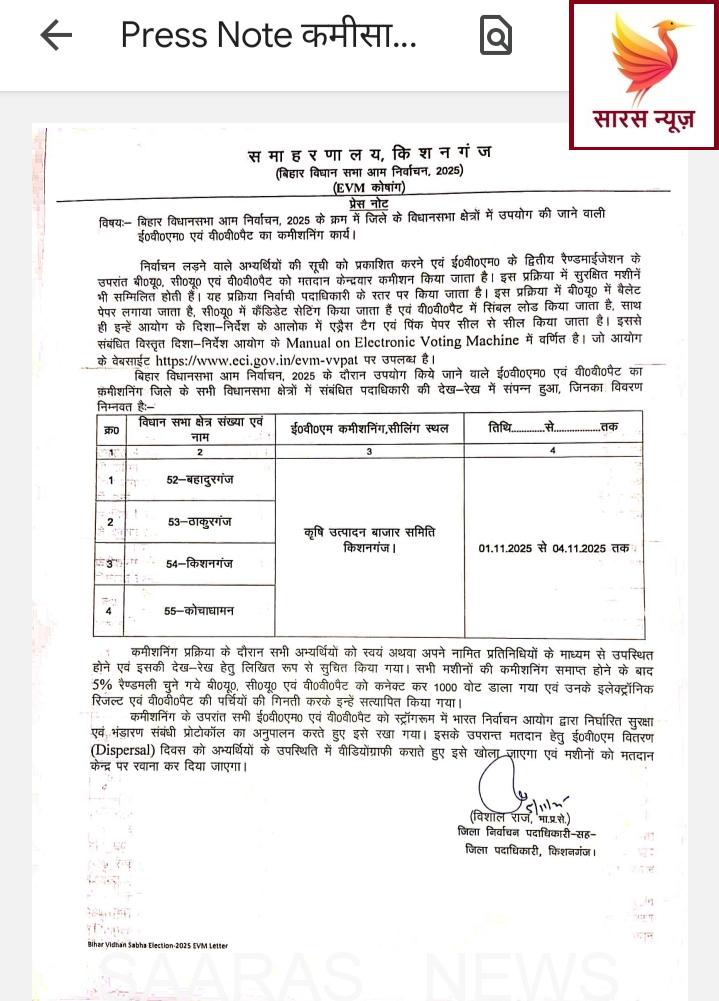 सारस न्यूज़, बहादुरगंज, किशनगंज।